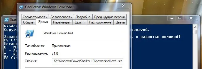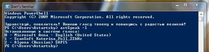 Не так давно я установил на него новую операционную систему MS Windows 7 RC и не мог не ознакомиться с тем, что предлагалось в комплекте. Наибольший мой интерес вызвала командная строка PowerShell и среда PowerShell ISE. Где-то на просторах интернета существуют самые разные командлеты для осуществления почти любых задач, в том числе и для воспроизведения речи. Но мне хотелось реализовать все через обычную функцию, чтобы не быть зависимым от установленных командлетов. Их же, в конце концов, может и не быть на определенном компьютере, а профиль скопировать — дело минуты. Кроме того, недавняя история с исчезновением в новой сборке, например, командлета Get-Clipboard для работы с буфером обмена, настораживает относительно чрезмерного использования редких командлетов. А вот классы .NET никуда не денутся, хотя доступ к ним может быть тоже не самым простым: в данном случае приходится запускать консоль в режиме -sta чтобы иметь возможность работать с буфером обмена.